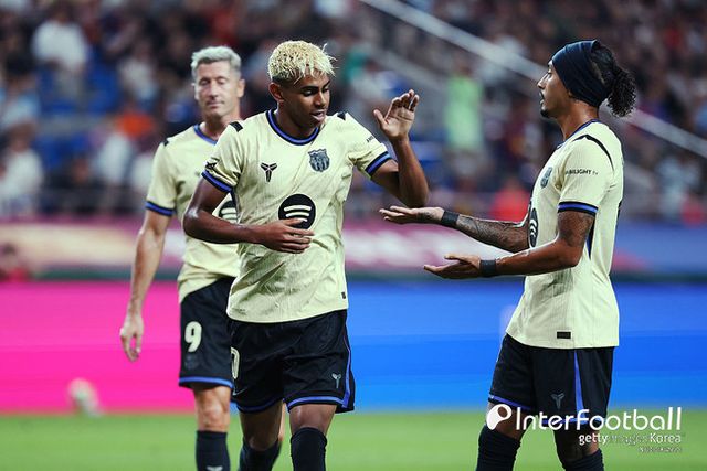 바르셀로나가 다시 앞서갔다. 전반 추가시간 2분 우측에서 볼을 잡은 야말이 김진수를 제치고 왼발 슈팅으로 마무리했다. 전반전은 바르셀로나의 3-2 리드로 종료됐다.