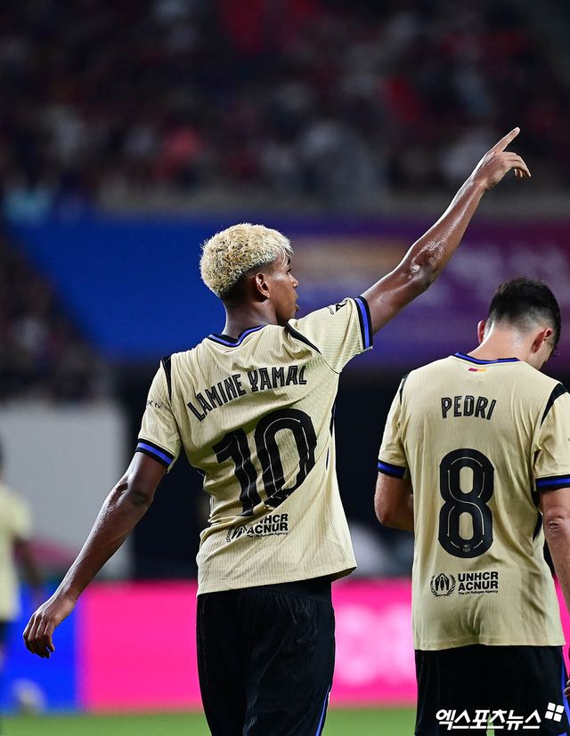 (엑스포츠뉴스 서울월드컵경기장, 김정현 기자) '발롱도르' 유력 후보 라민 야말이 서울에서 원맨쇼를 선보이며 바르셀로나의 대승을 이끌었다.