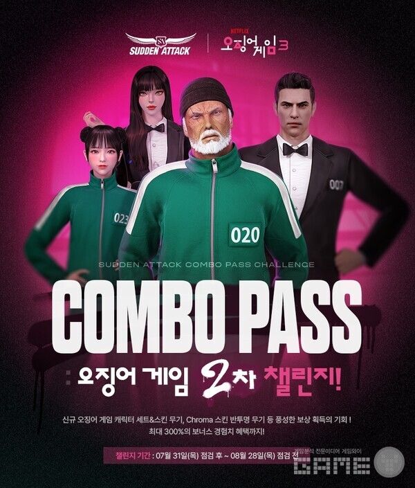 넥슨은 31일 온라인 FPS '서든어택'에 넷플릭스 오리지널 시리즈 '오징어 게임' 시즌3와의 협업 콘텐츠 ‘숨바꼭질 골목’을 추가했다. 근접 무기만으로 승부를 겨루는 이번 섬멸전 콘텐츠는 작품 속 공간을 재현한 전장에서 숨바꼭질 상자와의 접촉을 통해 버프나 보상을 얻는 방식으로 진행된다. 해당 콘텐츠는 9월 25일까지 운영되며, 이벤트 상점에는 오징어 게임 테마의 근접 및 투척 무기 보상이 추가됐다. 또한 '콤보패스: 오징어 게임 2탄'이 오픈돼 다양한 성장 보상과 'Chroma' 시리즈 무기를 획득할 수 있으며, PC방 접속 보상과 크리에이터 '랄랄' 캐릭터 출시를 기념한 이벤트도 동시에 진행 중이다.