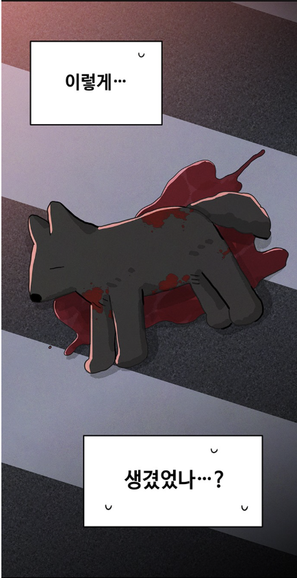 가까스로 피한 은비와 달리 검은 개는 그대로 차에 치이고 맙니다.