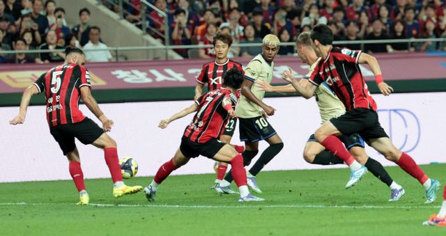 서울은 31일 서울월드컵경기장에서 열린 ‘FC 바르셀로나 2025 아시아 투어 에디션’ 친선 경기에서 라리가 챔피언 바르셀로나에 3-7로 졌다. 이날 선발 출전한 김진수는 45분을 소화한 뒤 후반전 시작과 함께 교체됐다.