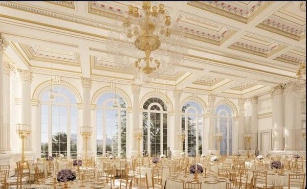 월스트리트저널(WSJ)은 백악관 X(옛 트위터)에 올라온 연회장의 건축 렌더링 사진은 흰색 기둥, 금색과 크리스털 샹들리에, 그리고 높고 아치형 창문이 특징이라고 전했다.