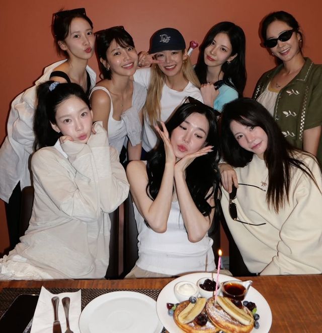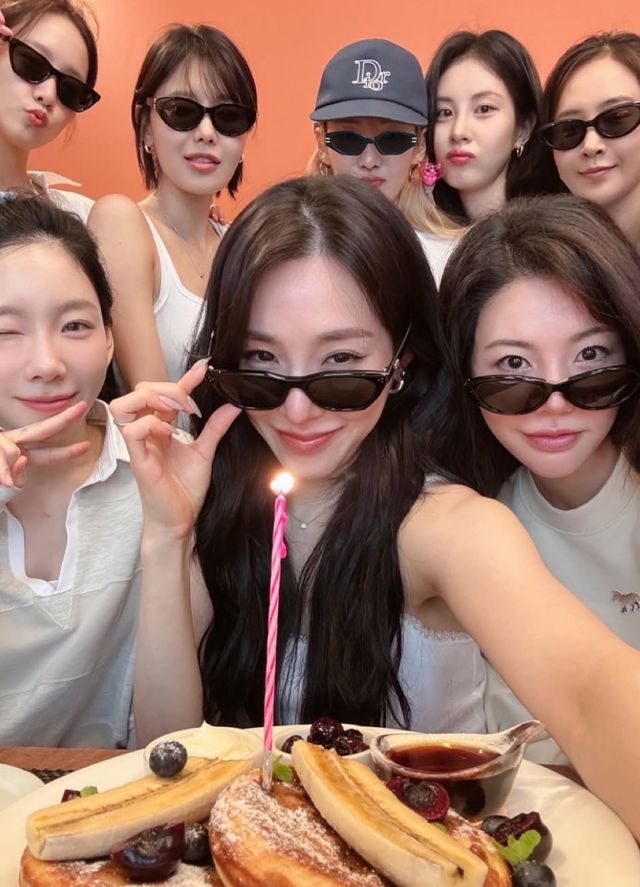 멤버 티파니는 1일 자신의 인스타그램을 통해 소녀시대 멤버들과 다함께 찍은 단체 사진을 공개했다. 센터는 이날 생일을 맞은 티파니. 멤버들은 유쾌한 분위기 속에 티파니의 생일을 축하하며 훈훈한 케미스트리를 보여줬다.