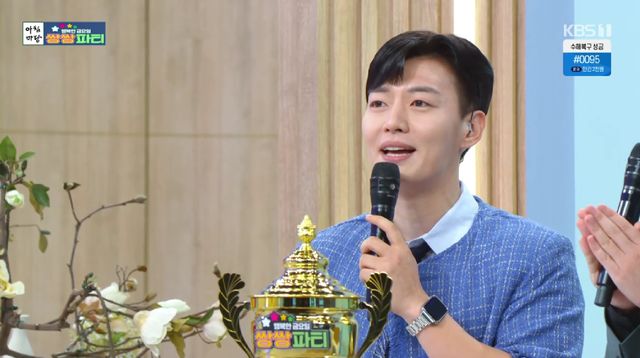 김수찬은 "시작부터 축하할 일이 있어서 수찬이가 준비를 했다"며 '아침마당'의 새로운 MC가 된 박철규 아나운서를 위해 구성진 가락을 뽐냈다.