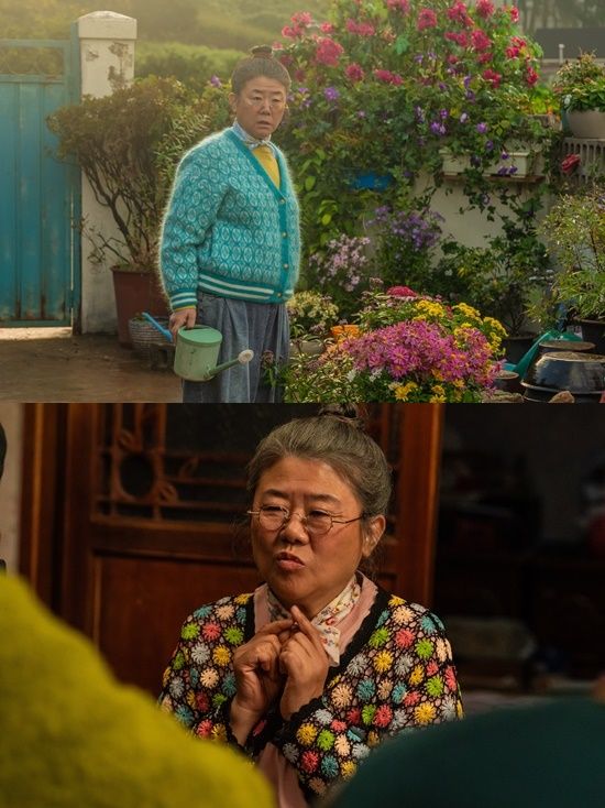 원작에서 튀어나온 듯한 역대급 싱크로율로 예고편 공개 직후부터 뜨거운 화제를 모은 할머니 밤순 역의 이정은. 원작의 비주얼을 고스란히 재현하는 것은 물론, 실제 배우의 연령대보다 높은 캐릭터를 소화하기 위해 좀비 못지않은 고난도의 특수분장이 동원됐다.