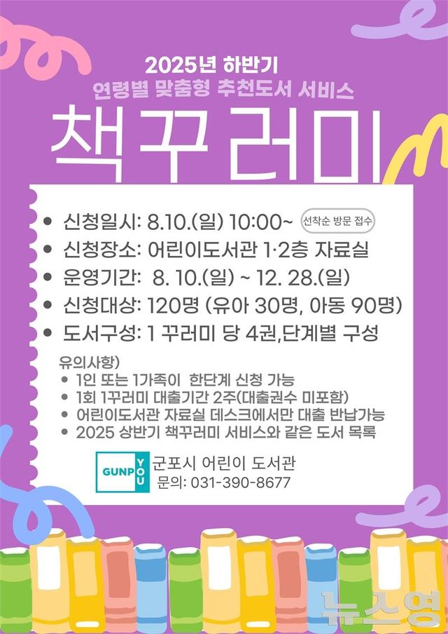 상반기에도 운영된 이 서비스는 간편하게 신간 도서를 접할 수 있다는 점에서 큰 호응을 얻었으며, 하반기 프로그램은 오는 12월까지 선착순 방문 접수로 진행된다. 신청은 어린이도서관 자료실 방문 시 가능하다.