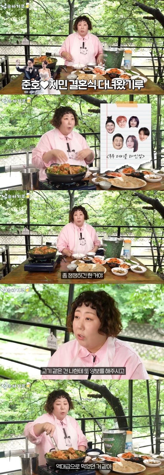 그날 먼저 자리를 떠난 안영미의 음식이 나올 때마다 눈치게임이 시작됐다고 덧붙인 신기루는 "영자 선배님이 통 크게 고기는 나한테 양보를 해주셨다. 그런데 뒤에 어떤 찜이 있었다. 그게 맛있었는데 준현 오빠가 가져갔다"고 회상했다.