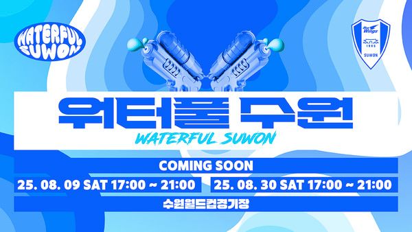 1일 수원은 보도자료를 통해 "홈에서 열리는 2025년 8월 9일 토요일 안산그리너스전과 8월 30일 토요일 성남FC전 여름맞이 물축제 ‘워터풀 수원(Waterful Suwon)’ 페스티벌을 개최한다"라고 밝혔다.
