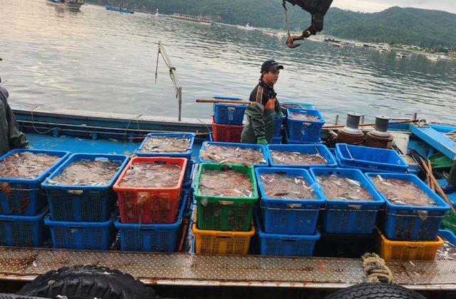 2024년 7월 30일 경북 포항시가 수산물 피해 예방 등을 위해 실시한 해파리 수매 사업이 사업 시작 보름만에 예산 소진으로 중단된 가운데 지난 28일 남구 양포항에서 어민이 고기 상자에 가득한 해파리를 지켜보고 있다. 포항시는 지난 16일부터 예산 1억 7000만 원으로 kg당 300원에 수매를 시작했는데 당초 목표인 500톤을 초과한 510톤을 수매했다. / 뉴스1(독자제공)