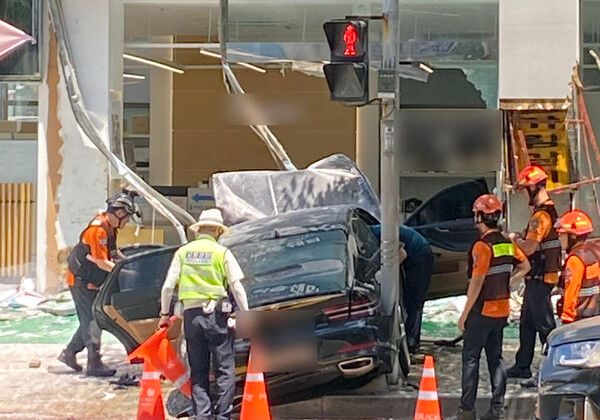 뉴시스 보도에 따르면, 사고 충격으로 승용차 엔진룸에서 불이 나고, 1층 매장 유리 등이 파손됐다.
