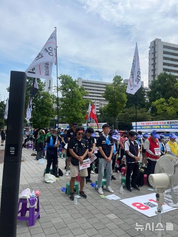 노조 측은 "폭염 속 작업장 환경이 안전 기준에 미치지 못한다"라며 사측에 ▲2시간마다 20분씩의 휴게시간 보장 ▲모든 작업장 냉방설비 설치 ▲쿠팡 청문회 약속 이행 ▲단체협약 체결 ▲임금 인상 등을 요구했다.