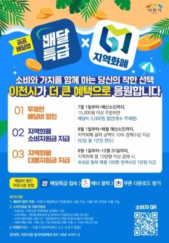 김경희 시장은 “이번 소비자 혜택 확대가 지역 소상공인의 실질적 매출 증대와 공공배달앱 활성화에 긍정적 영향을 줄 것으로 기대한다”라며 “앞으로도 이천시는 지역경제와 상생하는 소비문화 확산을 위해 노력하겠다”라고 말했다.