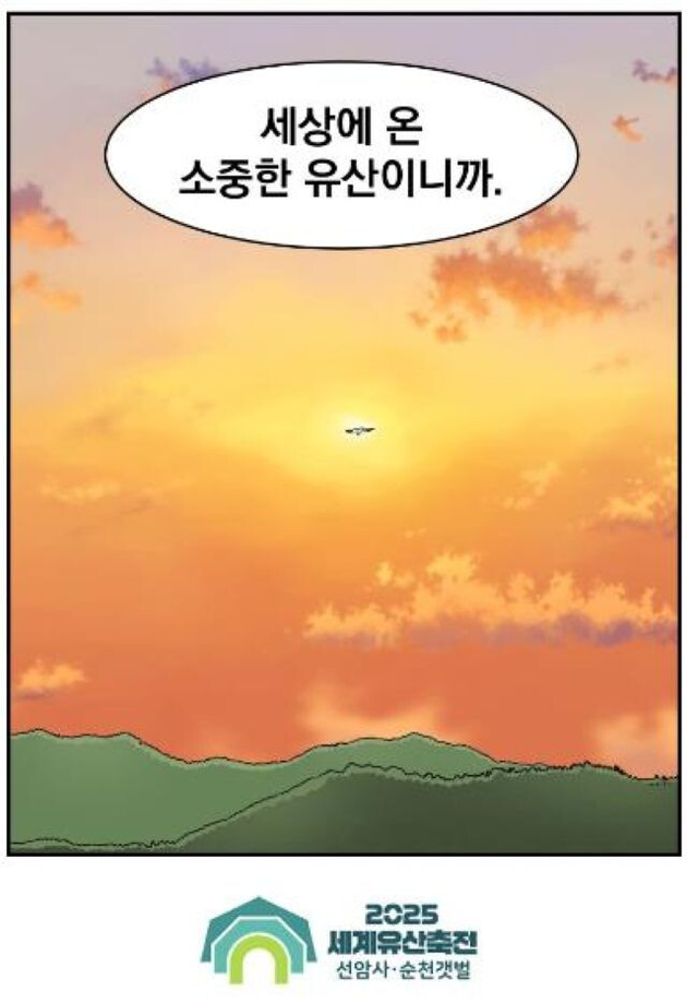 전남 순천시와 순천시 세계유산보존협의회는 '2025순천세계유산축전 웹툰·애니메이션 공모전'에서 김준성(대구)씨 웹툰 '세상에 온 소중한 유산'을 최우수상으로 선정하는 등 수상작 4편을 발표했다.