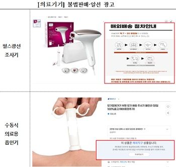 ▲미허가 의료기기 불법유통(판매·알선) 광고 점검 결과