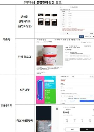 온라인 의약품 불법유통(판매·알선) 광고 점검 결과, 총 203건이 적발됐다.