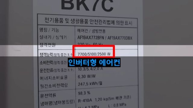 에어컨을 계속 켜뒀는데도 전기요금이 많이 나오는 경우에 대해서는 에어컨 종류를 확인해야 한다고 강조했다.에어컨 옆이나 뒤쪽의 정격 능력 표시를 보면 숫자가 세 개로 나뉘어 있는 경우와 하나만 있는 경우로 구분된다. 세 개로 나뉘어 있으면 '인버터형'으로 계속 켜두는 것이 유리하고 숫자가 하나만 있으면 '정속형'으로 사용하지 않을 때는 끄는 것이 전기요금 절약에 도움이 된다.