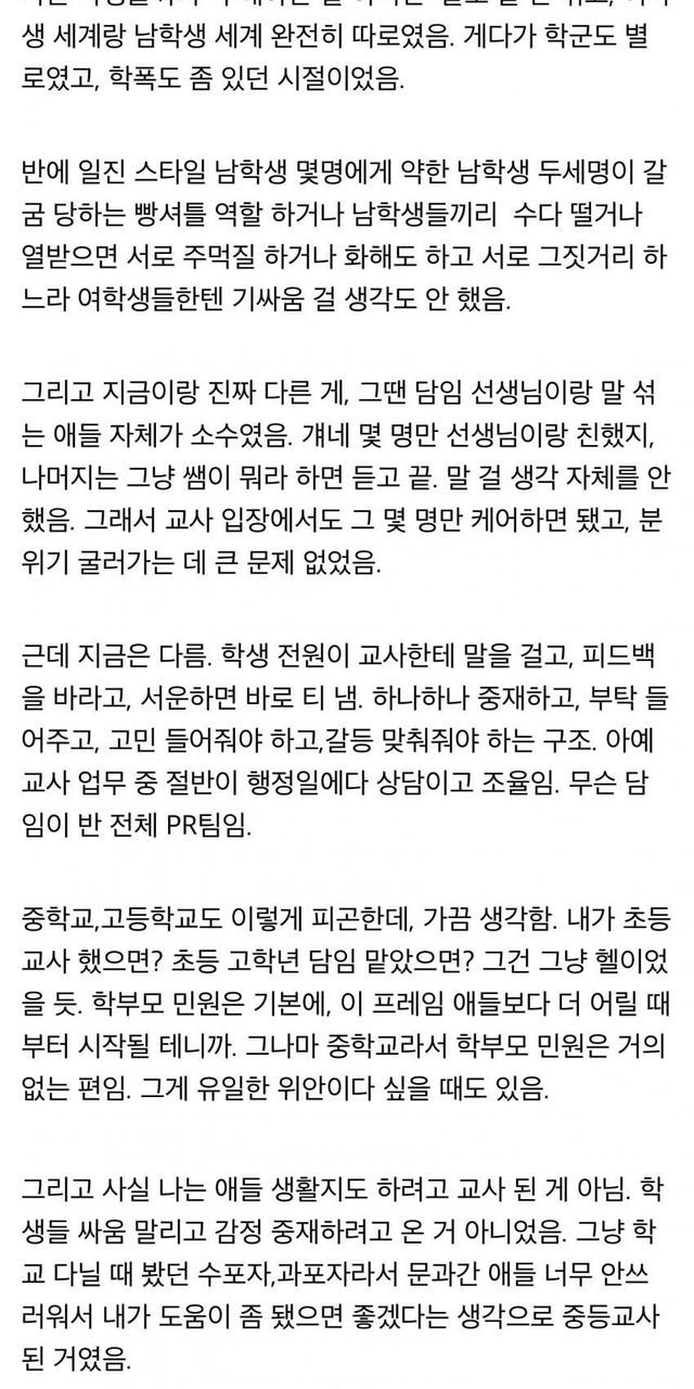 교사 입장에선 하청 개념으로 담당일진 있던 시절이 편했을지도..