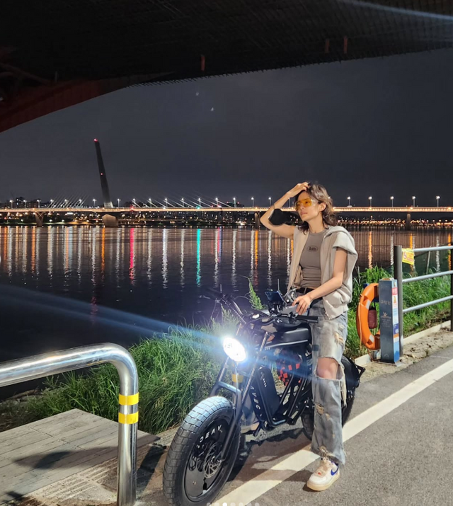 정혜인의 사진 속 바이크는 미국 브랜드 SUPER73 스타일로 보이는 전기바이크로, 두꺼운 타이어와 클래식한 프레임, 전조등이 특징이다. 페달을 이용해 직접 주행할 수도 있고, 전기 모터로 편하게 달릴 수도 있어 출퇴근은 물론 레저용으로도 활용도가 높다. 특히 감각적인 외형 덕분에 패션 아이템처럼 소비되며 SNS 인증샷 전용 탈것으로도 주목받고 있다.