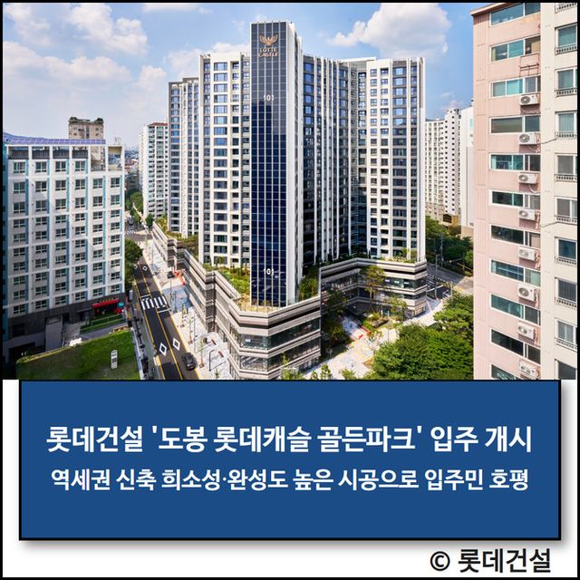 롯데건설은 서울 도봉구 일원에 공급한 '도봉 롯데캐슬 골든파크'가 지난달 31일부터 본격적인 입주를 시작했다고 밝혔다. 이 단지는 지하 4층~지상 23층, 전용 84㎡ 단일 면적 총 282가구 규모다.