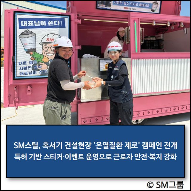 SM스틸 건설부문은 올여름 기록적인 폭염에 대응해 '온열질환 제로(0)' 캠페인을 전개하고 있다고 밝혔다. 이번 캠페인은 근로자들의 건강 관리를 최우선으로 두고, 삼계탕 데이와 팥빙수 이벤트 등 다양한 현장 활동을 포함한다.
