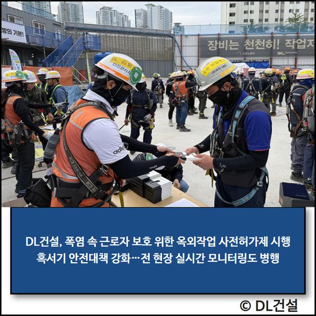 DL건설은 지난 6월부터 '더위사냥 3보 활동 캠페인'을 전개하며, 보급·보호·보장을 핵심으로 근로자 보호에 나서고 있다. 지난달 9일부터는 전 현장에서 온열질환 특별교육을 진행했다. 이후에도 미승인 작업에 대한 실시간 모니터링을 강화하고 있다.