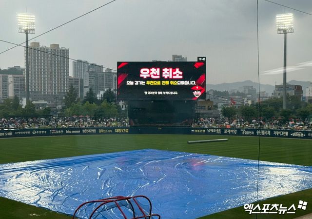 당초 그라운드 정비 후 오후 7시 경기가 지연 개시될 예정이었다. 그런데 개시 지연이 발표되자마자 또 비가 퍼붓기 시작했다. 다시 그라운드에 방수포가 깔렸고, 그라운드 정비 작업은 시작도 하지 못한 채 시간이 흘렀다. 결국 경기 개시가 어렵다고 판단, 오후 5시 40분께 우천 취소가 결정됐다.