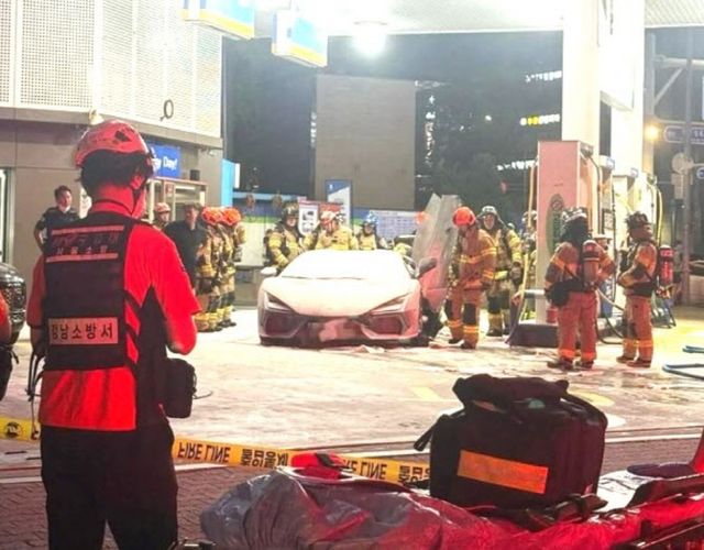 2일 소방 당국 등에 따르면 전날 오후 8시 54분쯤 강남구 신사동 한 주유소에서 주유 중이던 람보르기니 차에서 화재가 발생했다.