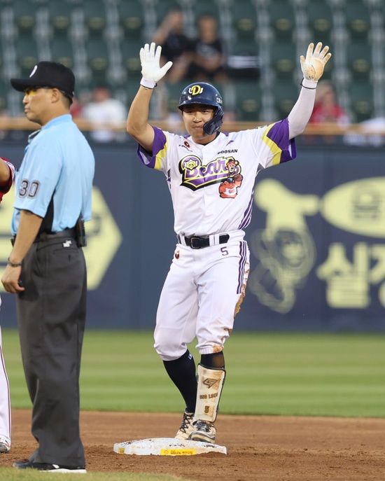 이날 두산은 정수빈(중견수)~이유찬(유격수)~케이브(우익수)~양의지(포수)~김재환(지명타자)~박준순(3루수)~김인태(좌익수)~박계범(2루수)~김민석(1루수)으로 이어지는 선발 타순을 앞세워 SSG 선발 투수 미치 화이트와 상대했다.