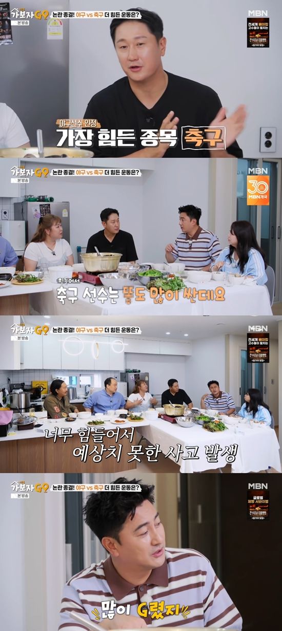 김민경은 "제가 지금 운동을 하고 있다. 축구를 하고 있는데 야구도 했었다. 해보니까 야구도 야구만의 매력이 많은 것 같다. 그런데 축구가 더 힘든 것 같다"라며 경험을 밝혔다. 이대호도 "제일 힘든 건 축구다"라며 동의했다.