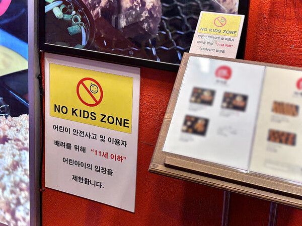 뉴시스 보도에 따르면, 양육자의 40%는 공공장소에서 자녀 통제가 잘되지 않는 경우가 있었으며 30%는 식당이나 카페에 갈 때 자녀를 동반했다는 이유로 불편을 경험한 적이 있다고 답했다. 자녀와 식당 등 공공장소에 갈 때 '노키즈 존'(어린이 제한 구역)을 확인하는 부모도 70%나 됐다.