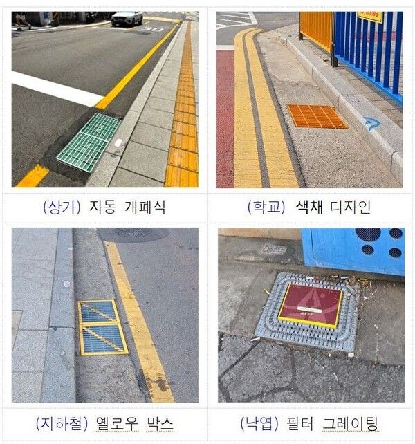 또 유동 인구가 많은 지하철 역사 주변 250개소에는 '경고성 옐로우박스' 디자인 뚜껑을 설치해 이물질 투기를 사전에 방지하고 있다. 이와 함께 재래시장 주변 이면도로 50개소에는 낙엽으로 인한 침수 피해를 막기 위해 낙엽 필터 그레이팅을 도입했다.