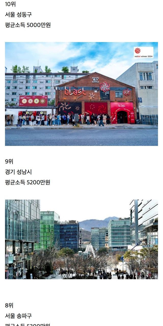 평균소득 높은 동네 Top10