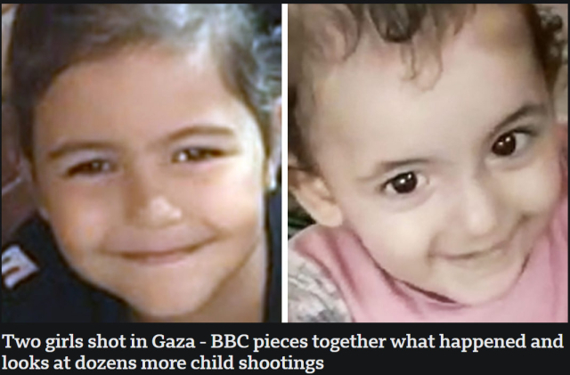 2023년 10월 이스라엘이 팔레스타인 가자지구를 침공한 이래로 이스라엘군(IDF)이 비무장 민간인을 무차별 학살한다는 지적이 끊이지 않아 온 가운데, 영국 공영 방송 <BBC>는 자체 취재를 통해 "최소 아동 168명의 총격 피해를 확인했고, 경위를 파악한 59건 중 57건이 이스라엘군의 총격으로 추정된다"고 밝혔다.