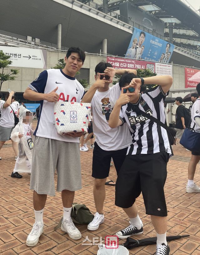 토트넘 팬인 최승혁 씨는 “아쉬운 마음도 있지만 레전드 선수다 보니 마지막 경기를 응원하고 싶은 마음에 오게 됐다”고 말했다. 함께 온 황호연 씨도 “사실 손흥민 선수가 아이콘이지 않느냐”며 “서울에서 마지막 경기를 볼 수 있다는 게 좋다”고 전했다. 양현규 씨는 “이번 이적 배경에 2026 국제축구연맹(FIFA) 북중미 월드컵이 있는 걸로 아는데, 좋은 결과로 이어지길 바란다”고 응원했다.