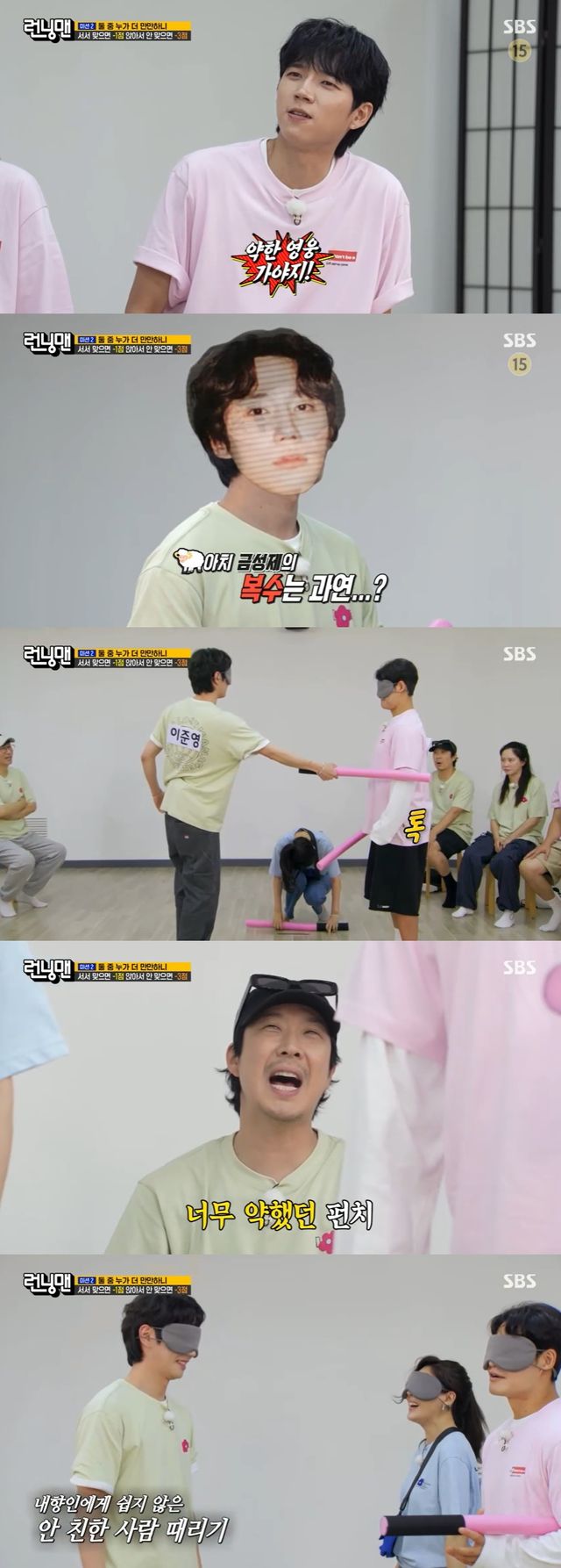 이어 이준영의 마지막 차례. "세게, 세게"라며 지석진이 부추겼지만 이준영은 또 한 번 약하게 몽둥이를 휘둘렀고, 이에 다시 멤버들의 야유가 쏟아졌다.