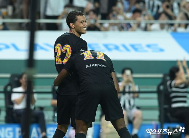 (엑스포츠뉴스 서울월드컵경기장, 김정현 기자) 고국 대한민국에서 토트넘 홋스퍼 고별전을 치르는 손흥민이 동료의 환상적인 득점에 활짝 웃었다.
