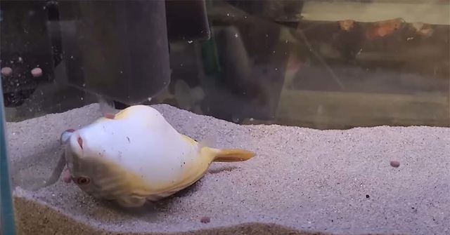 물고기가 누워서 먹이를 먹는다면 믿을 수 있을까. 한 유튜버가 공개한 복어 키우기 영상이 화제를 모으고 있다.