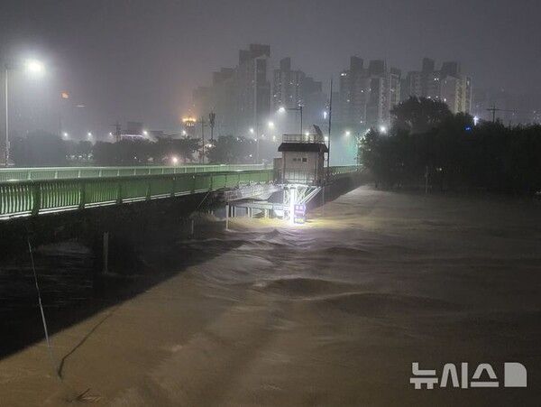 경보 수위 5.3m인 광산구 월곡동 풍영정천2교도 현재 4.4m로 이날 오후 9시30분을 기해 호우주의보가 내려진 상태다. 지평동 평림교도 수위가 3.77m에 달해 경보(4.2m) 수위에 다다르고 있다.