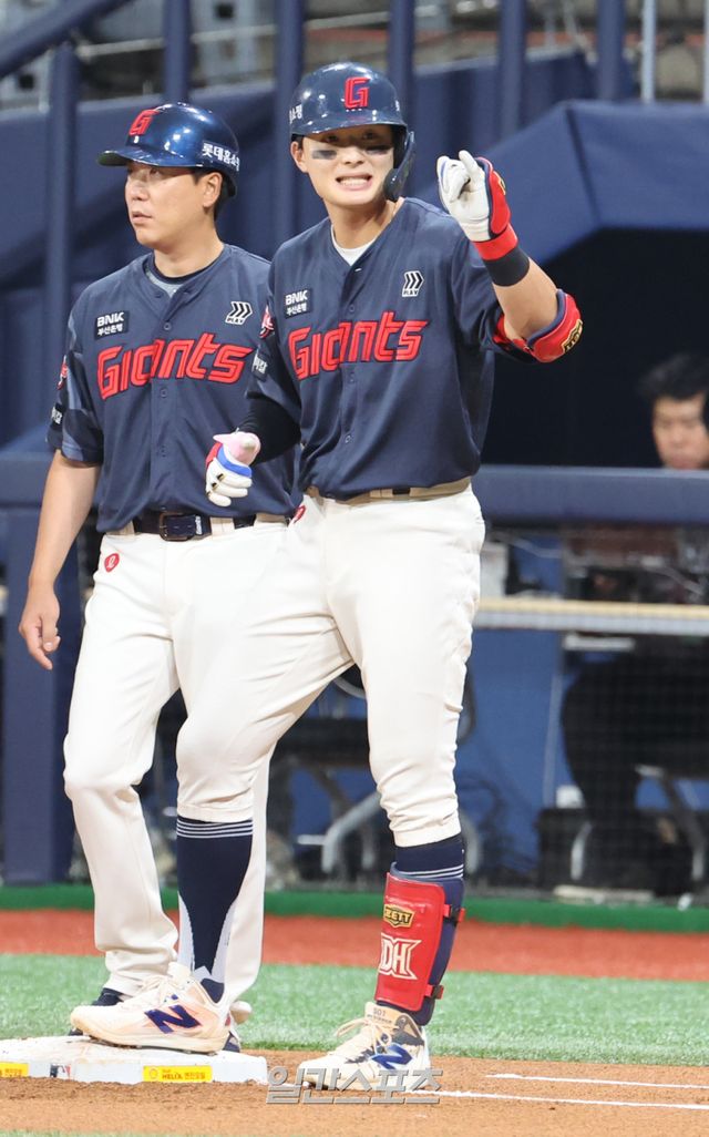 윤동희는 당시 감정을 잘 다스렸다. 이날 키움전도 마찬가지였다. 상대 투수는 이날 1군 데뷔 4번째 등판에 나선 신인이었다. 2회 내내 제구가 흔들리고 있는 걸 잘 알고 있었다. 차분한 기운으로 1루로 나간 윤동희는 투수 임진묵이 모자를 벗고 사과하자, 손을 올려 '괜찮다'라는 시그널을 보냈다.