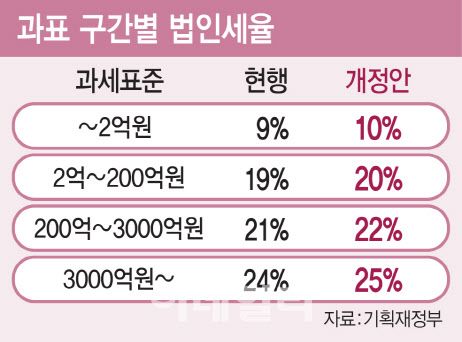 과세표준 전 구간을 1%포인트씩 올리는 법인세율 인상안도 논쟁 거리로 떠오르는 형국이다.
