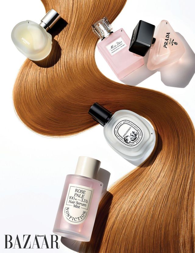 2 Dior 미스 디올 헤어 미스트 블루밍 부케 알코올을 배제한 워터 베이스로 첫 분사부터 꽃다발처럼 풍성한 향이 느껴진다. 다마스크 로즈, 피어니, 화이트 플로럴이 어우러져 여성스러운 매력을 극대화한다. 지속력은 아쉽지만 미니 백에 넣어도 공간 활용도가 좋은 사각 보틀 덕분에 휴대하며 수시로 뿌리기 좋다. 7만7천원대.