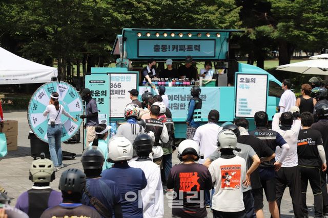 이번 행사는 지난달 30일 송파구 올림픽공원에서 운영한 데 이어 오는 5일 서울 중랑구 면목역 광장에서 진행한다. 운영시간은 하루 중 가장 더운 오후 2~5시로 설정해 배달 중간에 잠시 라이더가 쉬어갈 수 있도록 했다.