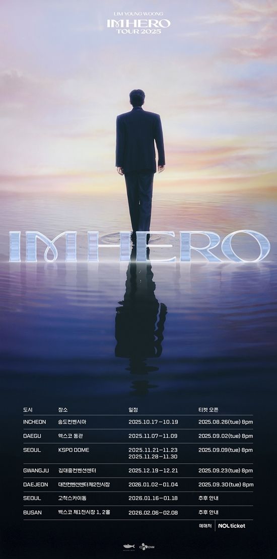 임영웅의 2025 전국투어 콘서트는 오는 10월 17일부터 19일 인천을 시작으로 11월 대구와 서울, 12월 광주, 2026년 1월 대전에서 열린다.