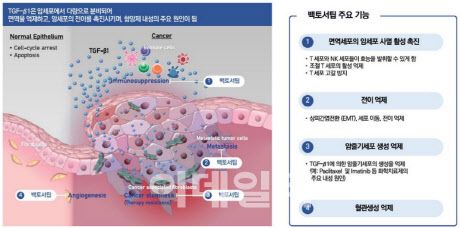 이어 “이중항체 개발 경쟁이 병용요법으로 차별화 요소를 찾는 가운데 TGF-베타(β) 저해제 ‘백토서팁’도 항PD-1 면역항암제 및 혈관내피성장인자(VEGF) 저해제와의 3제 병용으로 확장될지 주목된다”고 덧붙였다.