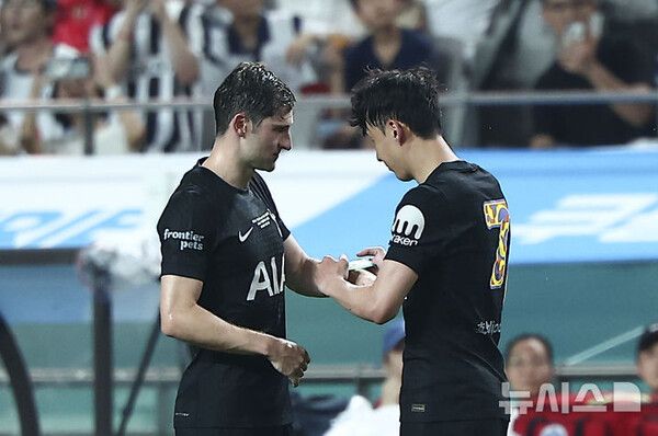 특히 후반 19분에는 토트넘에서의 마지막 경기를 치르고 교체되는 손흥민으로부터 주장 완장을 이어받고 진한 포옹을 나눴다.
