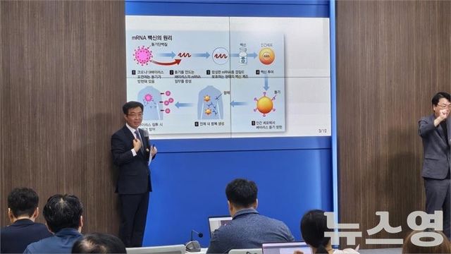 성 원장은 “코로나19 바이러스 표면에 있는 돌기를 만드는 바이러스의 mRNA 일부를 합성하는 방식”이라면서 “인간 세포에 바이러스 돌기를 발현해 인체 내 항체를 생성하면 바이러스 침투 시 항체가 방어하는 백신 효과와 같은 원리”라고 설명했다.