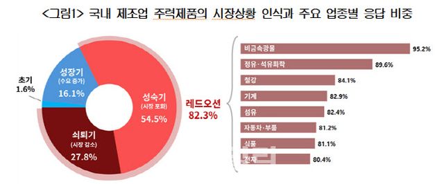 4일 대한상공회의소가 전국 제조업체 2186개사를 대상으로 실시한 조사를 보면, 전국 제조기업 10곳 중 8곳은 현재 주력제품의 시장이 레드오션에 접어들었다고 평가했다.