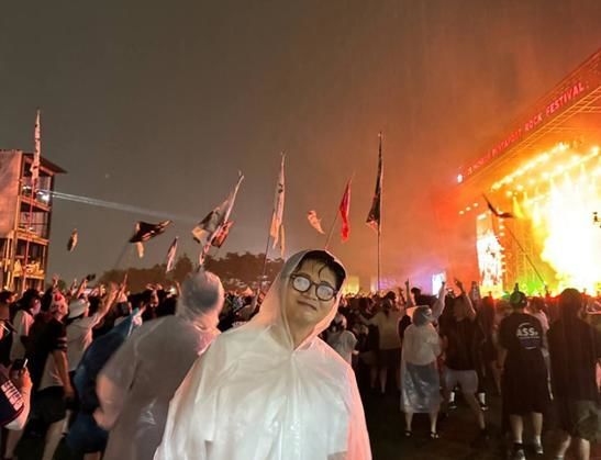 또 다른 사진에서는 잔디밭에 앉아 다리를 뻗고 공연을 감상하는 여유로운 모습도 포착됐다.
