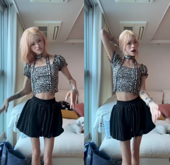 영상 속 최준희는 레오파드 패턴의 크롭탑과 검정색 치마를 입고 포즈를 취했다.