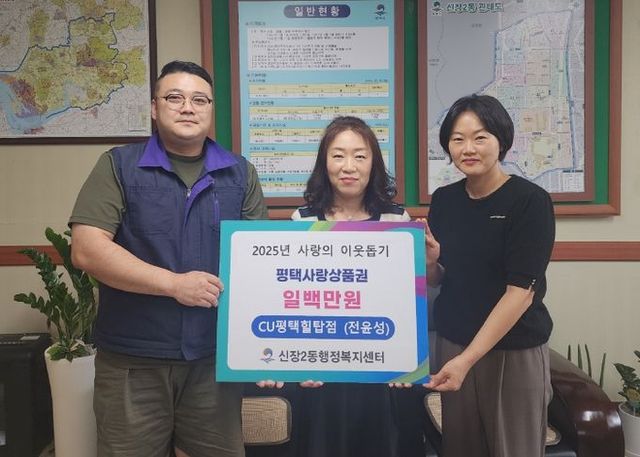 [와이뉴스] 평택시 신장2동에서 CU평택힐탑점을 운영하는 전윤성 대표가 어려운 이웃을 위해 써달라며 평택사랑상품권(일백만 원)을 신장2동 행정복지센터에 기부했다.